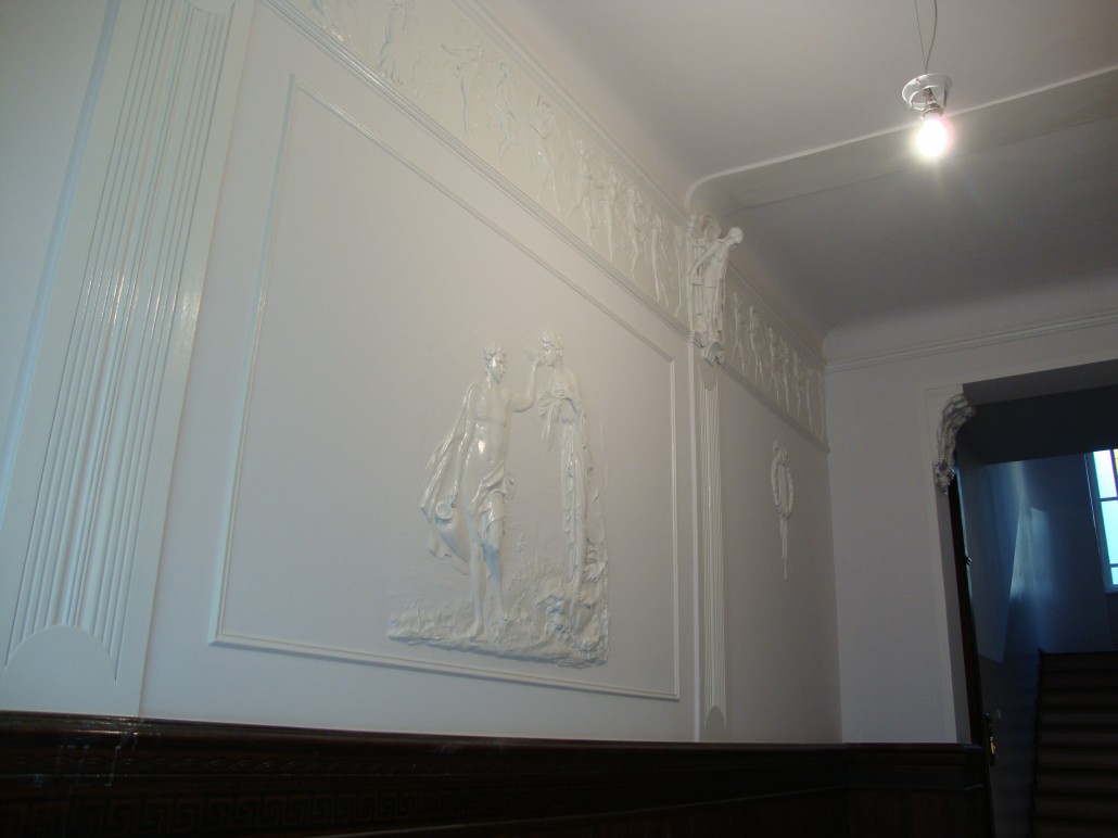 Zu unserem Leistungsspektrum gehören unter anderem Tapezier, Spachtel- und Verputzarbeiten. Gern übernehmen wir für Sie aber auch aufwändige Stuckveredelungen.
