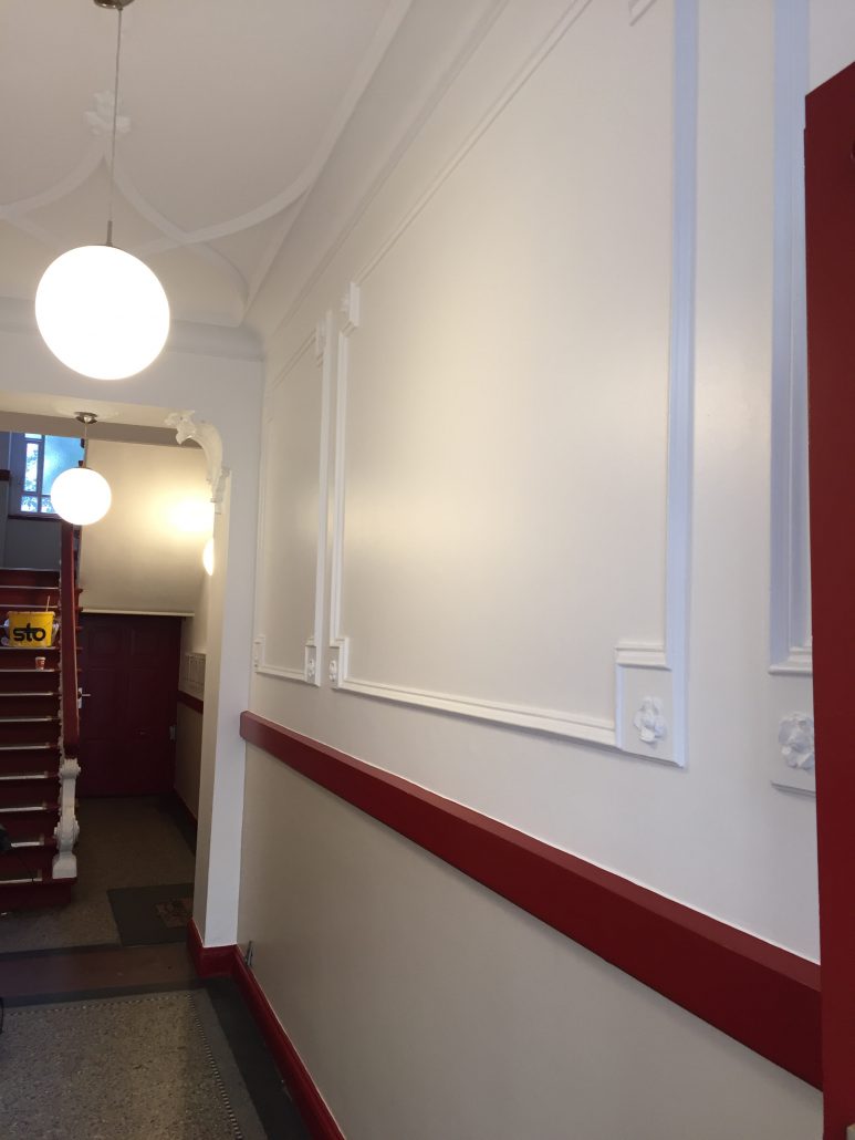 Das Treppenhaus ist der Eingangsbereich eines Hauses. Es dient als Aushängeschild, ist häufig aber auch der Ort, an dem Gespräche geführt und Kontakte ausgetauscht werden. Doch wie in jedem Raum hinterlässt auch im Treppenhaus der Zahn der Zeit seine Spuren. Abgehende Farben, sich lösende Tapeten und Gebrauchsspuren an den Wänden lassen es kühl und ungemütlich wirken. Dabei soll gerade das Treppenhaus die Lust wecken, ein Haus mit all seinen Facetten zu erkunden.